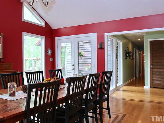 Contemporary home in beautiful private setting with a view of Mill Creek! Vaulted Family Rm w/views of water & doors to deck. Large Kitchen w/stainless appliance & farm sink, granite counters & island w/prep sink. Vaulted Dining Rm w/fireplace (has woodstove insert, gas line available for gas logs). Large Master BD has doors to deck; ensuite MBA w/walk in shower, garden tub, WIC. Partial Bsmnt. 2-car Garage & Dbl carport detached. Orange/Alamance water;Septic.