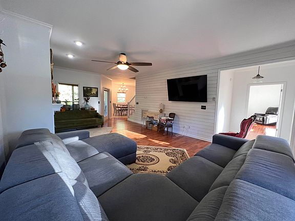 Convenient to Smith Lake, downtown Cullman, and I-65, this home sits back off the road on 5 acres offering 3 bedrooms, 2.5 baths, 9’ ceilings on the main level, recently painted and additions of shiplap tastefully placed throughout the home, hardwood floor and gas logs in the living room, master bedroom has walk-in closet and a gorgeous view of the front yard, the upstairs has 2 bedrooms with double closets in each room and a full bath. Head out back for some quiet time on the deck or wandering in the woods with nature. The oversized garage is big enough for 2 cars with a storm shelter and plenty of overhead storage.