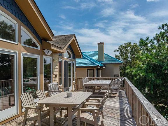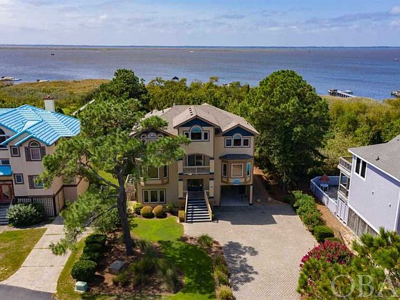 Here's your own private dream castle in the sand and on the sound. Unforgettable, breathtaking sunsets will be yours and idyllic moments spent with untamed nature will never be forgotten. The craftsmanship throughout this beautiful 7-bedroom, 7.5-bath home is accentuated by high-end, tasteful and comfy, furnishings and decor. The open top floor living/ dining/ kitchen area is bathed in sunlight streaming through a wall seemingly made of glass. The extra large gourmet kitchen will entice novice and pro cooks alike, beckoning family gatherings with two fridges, three dishwashers and all the accouterments necessary to whip up unforgettable feasts. You'll find so many things to do here your will heart will sing. Spend a sunny day on the beach. Enjoy crabbing, fishing, kayaking or just day dreaming on your own private pier with gazebo. Breathe in the salty air and delight in the antics of the abundant native wildlife. Take a quick swim in the large, private and heated pool or lounge back for a long soothing soak in the hot tub. Find some alone time in the Captain's Watch. Challenge someone to a game of pool in the ground floor game room while sipping on drinks mixed up in the conveniently located kitchenette. And your options don't end here. You'll also have access to all the wonderful Monteray Shores amenities including community pools, clubhouse with WiFi, gym, children's activities, bike and walking trails, playground, tennis, basketball, two piers and a boat launch. And don't forget all the close by attractions - the Currituck Light, the historic Whalehead Club and the infamous Corolla wild ponies. Your castle on drifting sands awaits your pleasure!