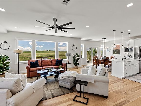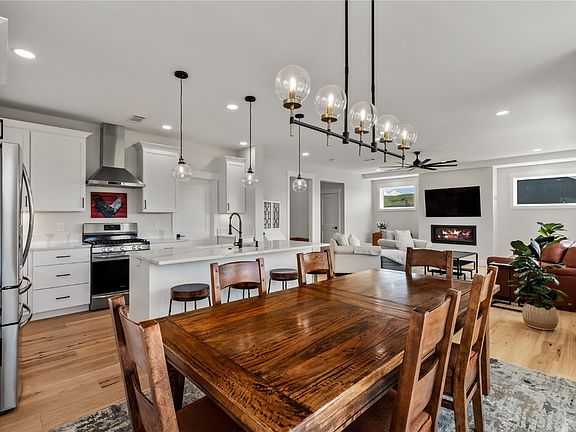 New Price!! Welcome to this exquisite 3+ bedroom, 2.5 bath masterpiece, a testament to thoughtful modern design and craftmanship. The beautiful exterior combines natural stacked stone, stucco, and siding, making it one of the most attractive homes in the neighborhood. An oversized garage with 9.5 x18 foot door provides for your big vehicles and extra gear. As you step inside, you'll be greeted by clean lines, light wide plank engineered flooring, and engaging spaces. Natural light floods the main level, creating a warm atmosphere with large windows framing peaceful views with Dry Creek running through. A horizontal fireplace adds a contemporary touch for cozy evenings in front of the fire. The open main floor boasts an immaculate kitchen with white shaker cabinets and luxurious white and gold quartz countertops, complemented by top-of-the-line Frigidaire stainless appliances. The sizable pantry offers ample storage for all your kitchen essentials. The adjacent dining area seamlessly extends to a scenic back deck and flagstone patio, perfect for entertaining or relaxing. Witness wildlife like eagles, antelope, and occasional deer and elk from your tranquil outdoor space. Upstairs, a charming barn door leads to the expansive master suite with a generous walk-in closet and luxurious en-suite bathroom. The walk-in shower and double vanity create a spa-like atmosphere. The upper level also features two oversized bedrooms sharing a Jack and Jill bath. Large windows and up-down blinds add privacy. A conveniently placed laundry closet and a cozy loft for extra guests complete this floor. Additional features such as radiant in-floor heating, central air conditioning, natural gas line for a grill or hot tub, garden shed and fully landscaped yard with irrigation add those extra indulgences every home owner desires. This home blends modern amenities with timeless charm, making it a perfect retreat, not just a place to live but a place to love.