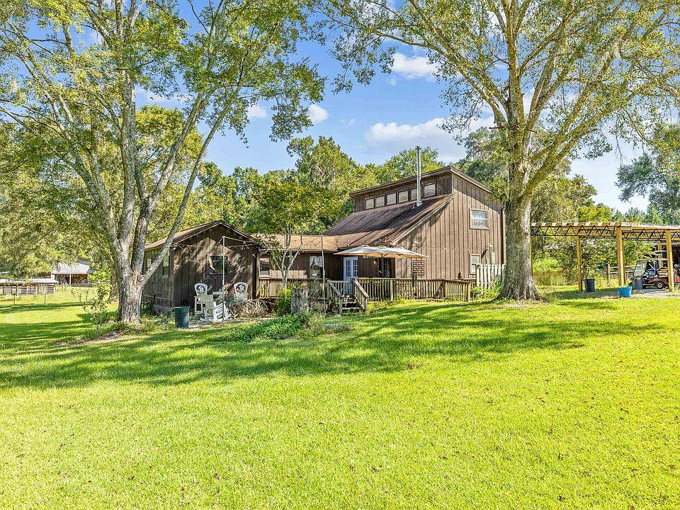 **ACCEPTING BACK-UP OFFERS** With acceptable offer, Sellers will entertain either a roofing allowance OR re-roofing just prior to closing. If you're looking for a farm, look no further. This property has a lot to offer, including multiple barns, horse stalls, outbuildings, a pond, various water sources/electrical outlets all over the property. Monticello is a short commute to Tallahassee and Thomasville, thus enabling you to live in a quiet, peaceful, rural town and enjoy all that nature has to offer, while having convenient travel roads and a short commute to shopping, dining, schools and medical facilities. Some of the Seller's FAVORITE things about this home/property - SUNSETS! Truly some of the best sunset views Mother Nature has to offer. Sellers also love the privacy (home cannot be seen from the road), blueberry trees, gorgeous oak trees and the quaint, historical charm that Monticello offers. The home and/or horse stables could easily be renovated/converted in a way to offer multiple living quarters with private access, thus making it great for multi-generational living or income producing. The house offers 5 BR's/3 BA's, with the owner's suite being very private from the main living area of the house and a closet space many dream of having. 4 of the BR's are downstairs - Upstairs has a semi-private sitting/living area, along with a storage closet, BR and BA. Selling as-is with the right to inspect. All measurements are approximate - Buyer responsible for verifying, if important. Gate and associated electronics will convey; however, the farm name (Sunny Bear Farm) will NOT.