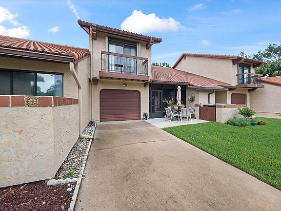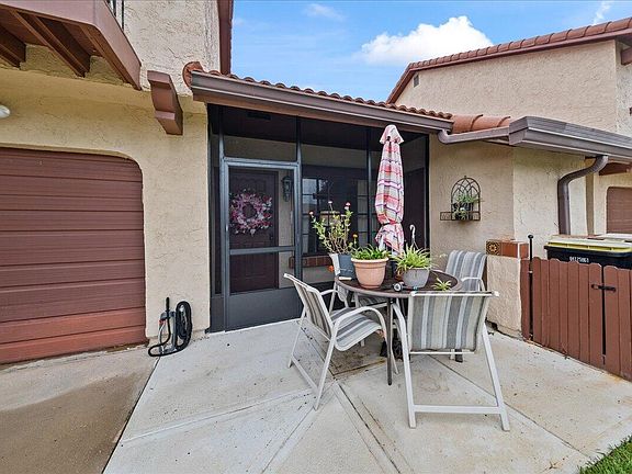 This beautiful 3 bedroom, 2.5 bathroom Spanish style townhome is located in desirable Country Club Vista community and is ready for its new family to love it as much as current owners do. The low HOA of $184 a month covers all grounds maintenance, club house, tennis courts, pool, bocci ball & pickle ball court! This home has spacious bedrooms, in home laundry room, one car garage, long driveway for plenty of parking and huge 350 sq ft enclosed porch overlooking backyard. Brand new barrel tile roof 2023, Accordion hurricane shutters for all windows and back slider , HVAC and water heater approx 2016. This community is centrally located to lots of shopping, restaurants & grocery stores and short drive to I-95 for easy commuting.