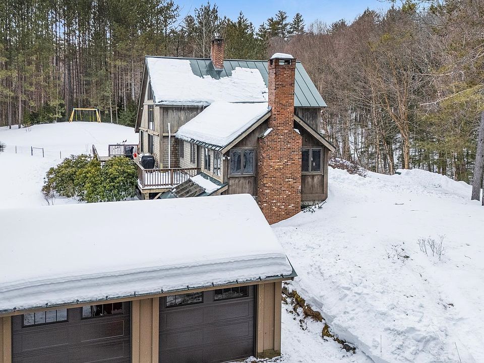 Yankee Barn home privately situated on 7 acres in Olde Farms with 4 bedrooms and 4 baths. Look out over a sloping lot to the woods beyond from a spacious wrap-around deck. Marvel at the 3-story great room with a floor-to-ceiling brick fireplace, gleaming pine wood floors, and a window display all the way up to the cathedral ceiling. Natural woodwork and solid wood doors throughout give this home a warm and welcoming aesthetic. Entertain from the open, updated kitchen with quartz countertops, a breakfast bar and newer stainless steel appliances. Take your pick of two first-floor bedroom suites, both with Jacuzzi tubs and one with its own fireplace. The lower level walkout family room features a brick hearth, kitchenette, half bath and sun space with skylights. Great for indoor plants! On the 2nd floor, you'll find a loft area with built-ins, the 3rd and 4th bedrooms, and another full bath. If that’s not enough space, climb the traditional staircase to the 3rd floor to find yet another room with skylights that could be used for hobbies, a play room, an office, etc. Complete with a 1-car garage under and a 2-car detached garage. Other amenities include a Buderus heating system, Rinnai tankless water heater, newer standing seam roof, AC mini splits, 2 separate septic systems and an automatic standby whole-house generator. Come enjoy the rural setting and close community you’ll find in Grantham, NH. In the heart of the Dartmouth - Lake Sunapee Region, only 20 minutes from DHMC.