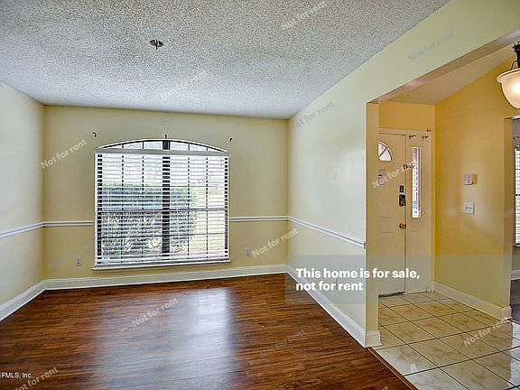 This Jacksonville one-story home offers tile and laminate flooring, a wood-burning fireplace, a back patio, and a two-car garage.