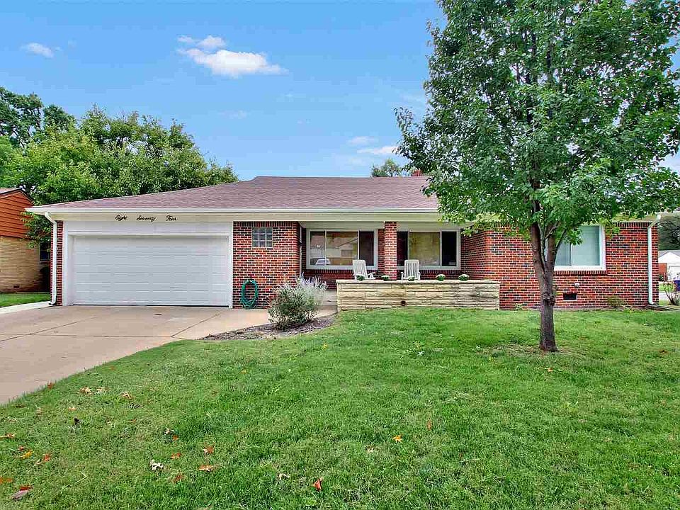 Absolutely immaculate home in southeast Wichita. All large items have been replaced and interior is beautifully designed, you wont find a home with more updates in this price range. All brick exterior along with new vinyl windows, new HVAC systems, and new electrical panel keep the home quiet and energy efficient. Floor plan has been opened up giving you plenty of space for entertaining, tons of natural light through the huge picture windows, and the stunning wood laminate floors are carried throughout the entire house create a flawless layout. Kitchen has been elegantly remodeled with attractive countertops, loads of built ins, stainless appliances, and a gas cooktop. Cozy living room with gas, stone fireplace. Three spacious bedrooms in the back of the home allow for privacy from the entertaining space. Granite countertops in the hall bathroom. From the living room, French doors lead out the brand new concrete patio in the fully fenced back yard, the shed and playset will remain. Rare, oversized two car garage with an extra deep stall for additional storage.