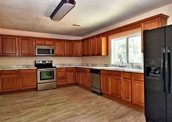 - Appliances: Dishwasher, Refrigerator, Microwave, Free Standing Stove: Electric