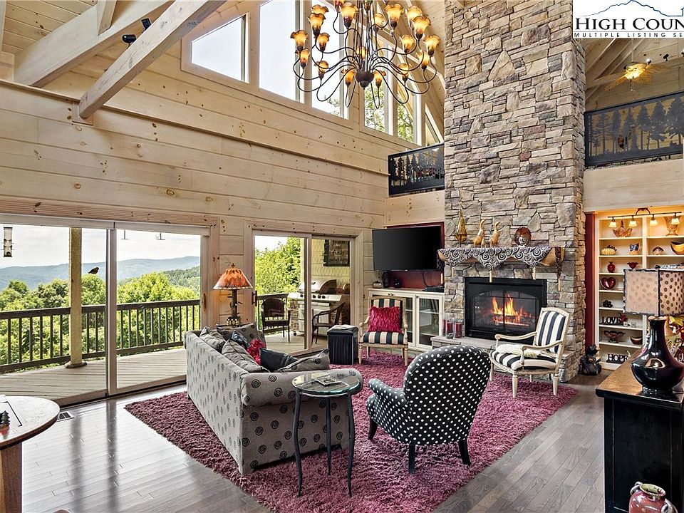 Welcome to the WOW!! (A must see On video tour, roll to the bottom for 360 walk-thru) Exceptional comfortable elegance for either your primary/vacation home or corporate retreat. Quality custom built Jim Barna Log & Timber frame 3 BR/4.5 BA home on 7.85 acres. Three levels of heated living meticulous maintained by original owner with no details spared. Located in the desirable gated community of The Summit. A gorgeous sunlit foyer & stairway w/custom metal handrailing greet you. Walls of windows allow an abundance of natural light & year round mountain views. Open seamless living w/ floor to 28' ceilings flank the stone FP in the Great Room that also leads onto a covered back deck. Gourmet kitchen, open dining, breakfast bar w/granite countertops, rich wood cabinets, detailed fixtures & all appliances. Main floor Primary suite is a true sanctuary, complete w/luxurious en-suite bathroom w/heated flooring, see thru rock fireplace, WIC & laundry. Open Loft bedroom overlooking the Great room with a full bath and WIC.