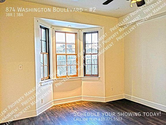 This 1750 square foot apartment home has 3 bedrooms and 2.5 bathrooms. This home is located at 874 Washington Blvd APT 2, Baltimore, MD 21230.
