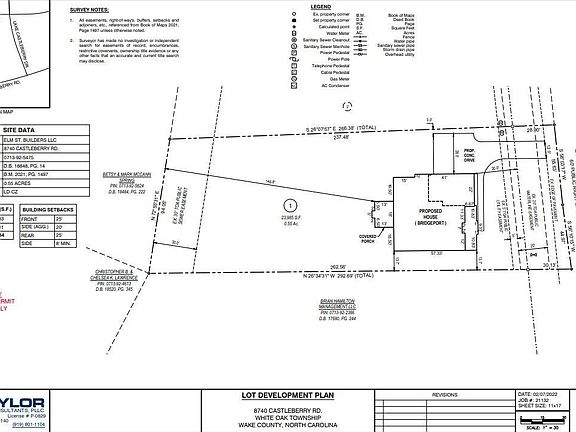 Elm Street Builders is pleased to offer this Builder's Choice* home to be built, beautifully situated on one of 3 large home sites in peaceful, pastoral Apex setting. Elegant, new luxury plan custom-designed w/ 4,289 sq ft, Primary BR suite upstairs, 3 car garage and covered porch w/ FP. Upscale, designer appointments throughout. Flat yard and room for future private pool, and your dream home on Castleberry will be ready late 2022! [*No changes to plan/selections.]