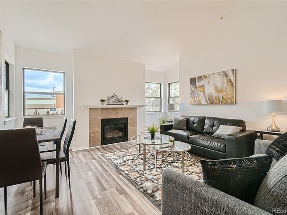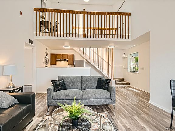 Enjoy this West facing Penthouse condo on the 3rd level! With two bedrooms, two bathrooms, and a spacious loft this unit presents a wonderful living & working space. Natural light flows throughout this unit as all windows are West facing towards the mountains. The primary bedroom has a large walk-in closet w/ an en suite bathroom. The large second bedroom is down the hall next to the guest bathroom. With high vaulted ceilings in the kitchen & living room area, natural light boasts through multiple windows surrounding the electric fireplace presenting an open design and able space. The loft sits above the kitchen with high ceilings and its own closet area for storage. A spacious laundry room with a stacked washer/dryer. This is a fantastic opportunity to own in Thornton and enjoy local attractions with easy access to i25 & i70. The Community swimming pool is a short walk from the unit. Enjoy two reserved parking spots on the Community parking lot, with plenty of additional parking on the street.