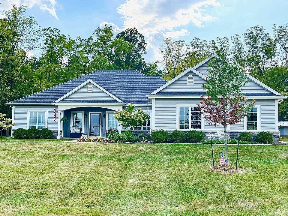 Pictures do not do this property justice; you must see for yourself! Beautiful serene 2 ACRES surrounded by fields & treeline, 28 x 40 POLE BARN & located in desired NW Allen Cty School District! The winding drive takes you to an 11 year young RANCH style home w/professional landscaping, boasting over 1900 sq ft w/3 Bedrms, 2 ½ Bathrms, Office/Den & attached 2 car garage. In addition there is a lovely screened-in porch that leads out to a concrete patio & firepit area that overlooks the spectacular grounds. The Open concept layout features a Great Rm w/stunning tray-wood beamed ceiling & stone gas-log fireplace. All open to a Kitchen w/large island & filled w/lots of cabinets & countertops providing plenty of prep & cooking space. Pantry as well! The split BR floorplan offers a large Primary Bedroom featuring walk-in closet, en-suite, door to exterior, and washer & dryer area. In addition there are (2) 11x13 bedrooms w/Jack & Jill Bathrm in between. All appliances included in the sale. Outdoor gas line for a grill if you desire. Water Heater & Dishwasher NEW 2024!