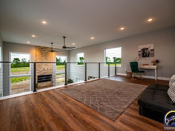 This brand new modern home has the trendy barn style and is a 2 story stick built frame construction situated on 3.0+/- acres in the Seaman school district. This house has, 9 ft. ceilings throughout. Premier Custom Wood Cabinets and a large island with Quartz countertops that make this kitchen a great central hub for meals and gatherings with a direct view into the open concept living space with a cozy Dimplex Linear Electric fireplace. Garage is wired for 210 and ready for an electric vehicle charge adapter! Enjoy expansive views from the upper loft with sleek matte black and stainless steel railings that overlook the 19’ open living area. Main floor laundry with an option for an upstairs stackable laundry as well. Large windows throughout giving this house an abundance of natural light. Main floor primary room with a safe room that has been built in and doubles as the primary closet. Call your trusted REALTOR® to schedule a showing today. Seller to provide up to $2000.00 towards seeding the yard upon possession. Seller is a license real estate agent in the state of KS.