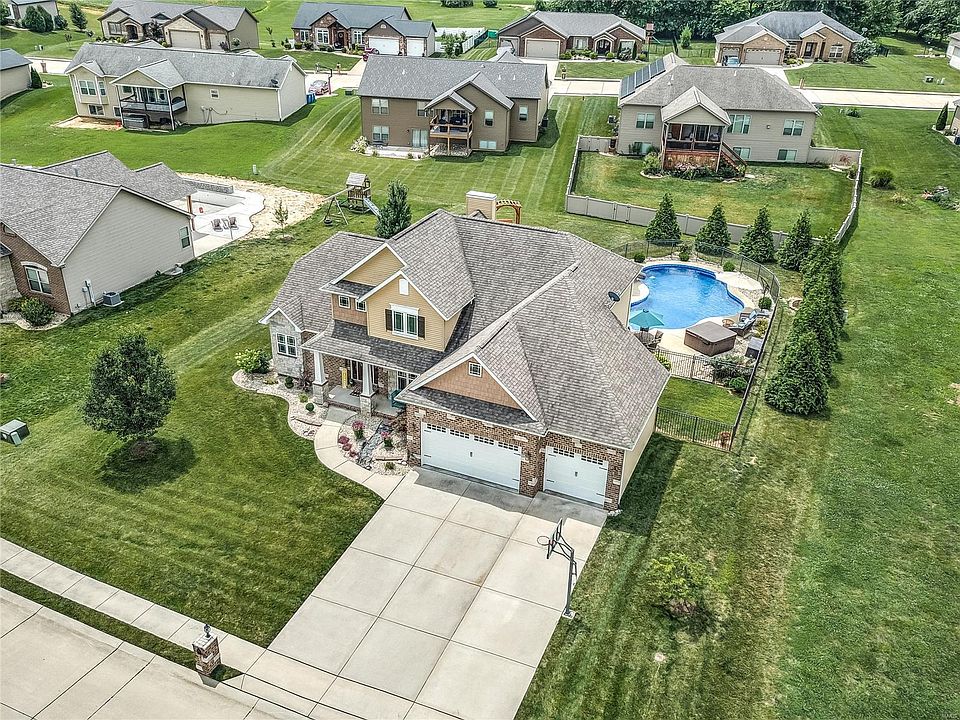 This is the one you have been waiting for! The meticulous custom built one owner home has everything. Curb appeal offers Beautiful manicured lawn & landscaping and inviting front porch. The backyard is ready for entertaining. There is an inground pool w/slide, extensive concrete surround for seating. The pool area is fenced w/black iron fencing. Owners just installed a retractable awning w/remote for shade. Inside offers beautiful bamboo flooring on the main floor. Kitchen has beautiful custom cabinets,granite countertops island & stainless steel appliances w/separate dining room. The 2 story living room has floor to ceiling windows that flank the fireplace. Main floor mst. bedroom is spacious & leads to a large bath, double bowl vanity/separate shower/tub & large walk-in closet. Upstairs had 3 bedrooms w/new carpet & full bath. The lower level is finished to include family room, game closet, 5th bedroom w/egress, full bath & large storage area.