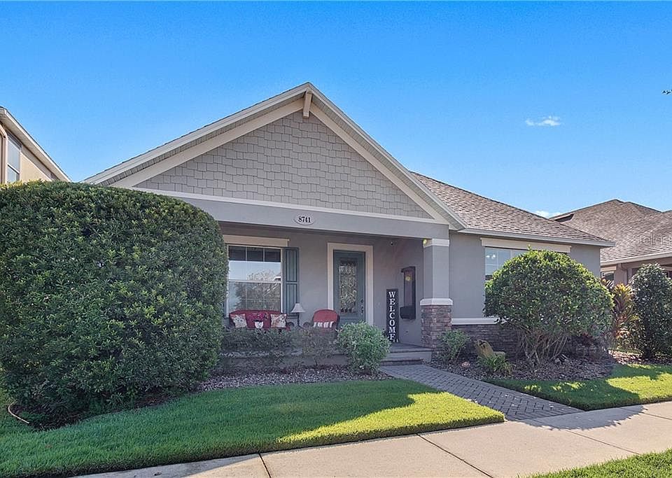 Charming style meets luxury Lake Nona living in this 4 bedroom one-story home in family-oriented Randal park. This impressive, move-in-ready, Craftsman Bungalow-inspired home is comfortable, airy and elegant. Easy living starts on the home's friendly front porch, where you can kick back and enjoy the quiet comfort of this picture-perfect neighborhood. Your kitchen-to-be is extra wide and decked with espresso cabinets, intricate backsplash, central island sink with bar, pendant lighting and stainless steel appliances. The master suite is your private getaway, with elegant tray ceiling, luxury bathroom, and custom closet designed by The Container Store (one of four throughout the home). You'll find more sanctuary on the comfort of a covered lanai, looking out on a fully fenced backyard - perfect for pets and play! This home comes with 25 years left on its structural warranty plus a Termite Bond. In the last 6 months, the home saw the installation of 3M UV film on its front windows, a Pelican Water Filter/Softner, along with a complete guest bathroom renovation within the last year. All of this and more nestled inside one of Lake Nona's premier communities - with walking trails, an incredible community center with pool, and several parks to enjoy. Easy access to major roads and prime schools make this home a perfect hub for your family. Call today to arrange a private showing.
