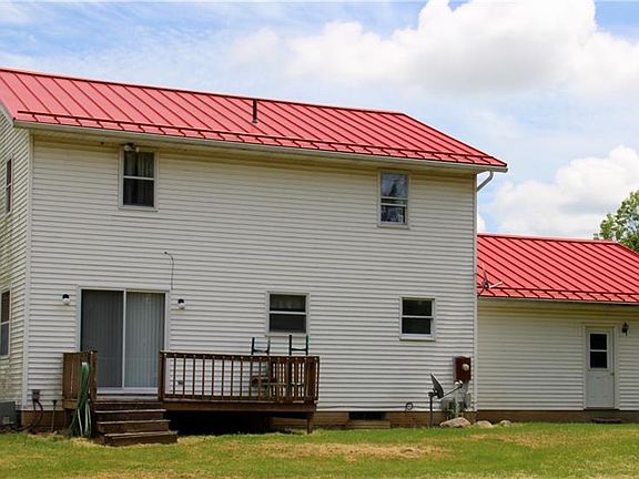 Welcome to BIG SKY country. With over 3 acres, this hilltop property is one of those hard to find country properties with gorgeous & peaceful sunset views. Relax on your front porch. The two-story home built in 1980 has a full kitchen w/dining area looking out onto the deck. First floor laundry and full bath combination. The family room has a fireplace and open concept staircase leading to 3 bedrooms and another full bath. The home has an attached two-car garage and a full unfinished basement with poured walls. Add your decorating tastes to make this your very own for years of memory making enjoyment.The mechanicals include a propane furnace, central A/C, elec. hot water, plus it is wired for a back-up generator. The pretty red updated steel roof was done within the last 3 years. Other improvements include a 28 x 50 pole barn with 4 box-stalls, newer steel siding & roof plus a 16x50 open lean-to. There is also a detached 24 x 24 masonry garage w/two newer Ohio doors and concrete floor. There are some fruit trees on the property, plenty of room for a garden, and room for a little pasture.