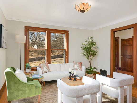 Sold Before Print. Welcome to one of Bloomington's original farmhouses! This classic 2 story sits on a sprawling .61 acre lot with mature trees and a private patio. From the moment you walk through the front door you are met with gorgeous wood floors and trim. The living room and informal dining room create a relaxing, open environment that's perfect for relaxing or entertaining. You will absolutely adore the sunroom surrounded by windows with views of Bush Lake. You could just about spend all day in this space. The kitchen is spacious with an additional dining space and is ready for your modern updates, though you may want to hang on to the stainless Bertazonni range. There's even a half bath on the main level-exceptionally rare for a home of this vintage.
