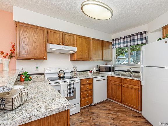 Silver Valley at Bear Creek Townhomes is a sought after community in Lakewood and boarders Bear Creek Trails so you can WALK to endless biking and hiking opportunities. The complex has mature trees throughout that offer lovely shade in the afternoon. This townhome invites you in with an updated kitchen with an open concept to the dining room and family room. Wood look luxury vinyl flooring throughout is beautiful and durable. Enjoy a wood burning fireplace and a Trex deck balcony for outdoor entertaining. A guest bathroom completes the main level. Upstairs you have 2 generous bedrooms with extra large closets, wood look luxury vinyl flooring, fresh paint and a large full bath. This home has its own attached garage and large storage/laundry/utility room. The HVAC system was new in 2019. Windows are also new. The washer and dryer stay with the home. In addition to the garage there is a reserved parking spot right out front and plenty of visitor parking. The community has very low HOA fees but still offers lots of amenities including two pools, tennis courts and clubhouse. Just minutes to the mountains, Red Rocks, Historic Morrison and Bear Creek Reservoir. Easy commute to Belmar or downtown. Yummy restaurants and great shopping are right around the corner. Silver Valley at Bear Creek is sure to provide its residence with the taste of county living while enjoying all of the amenities of the city right at their fingertips.