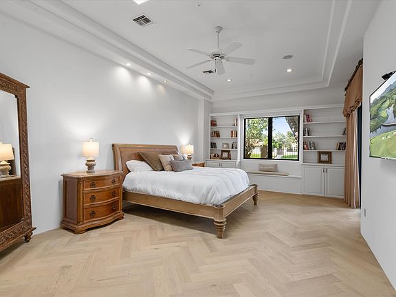 The LR & DR have 10 ft sliding glass drs that lead to a private oasis complete with large inground hot tub. Primary BR has custom cabinetry & a cozy window seat w/storage below. Large master bath w/double sinks & a custom walk in closet complete the owners suite.