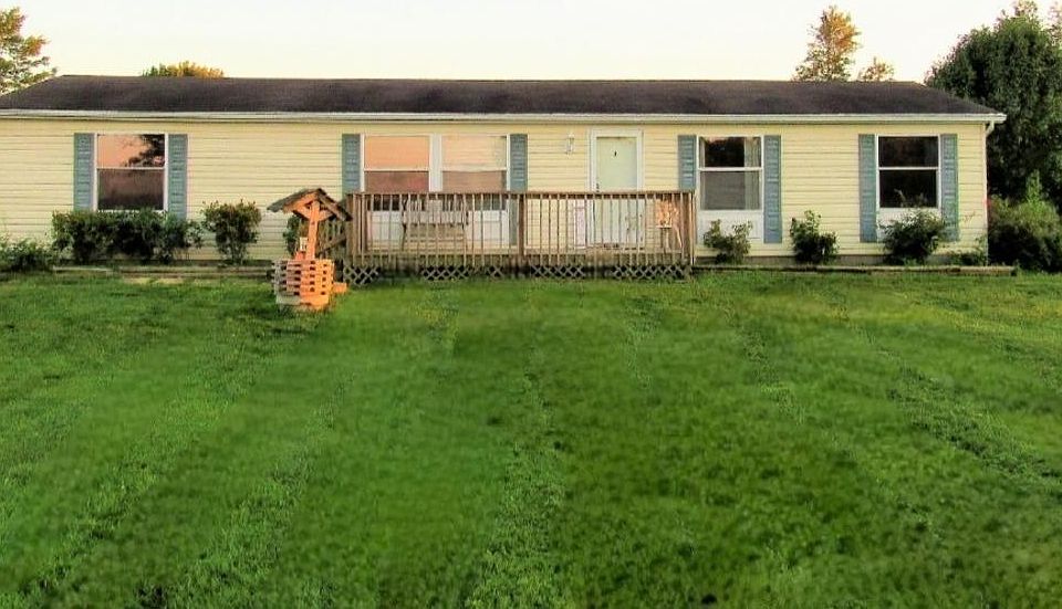 This spacious 4 bedroom, 2 bath home is located on 4+ acres and just minutes from St Rt 32. It has a stocked pond, an Amish built shed and a covered rear deck with an amazing view.