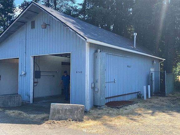 Amazing opportunity to own some land and a shop in a great location. This 1008 sq ft warehouse is fully insulated with a gas furnace and water on site. 2 bays with 10 x 9 steel roll up doors and 11 foot ceiling. Wired for 220. Formerly used as a governmental firehouse building and is a potential candidate for a zoning variance with the county. Perfect for storage or small business. Lots of space in the finished attic with large access. Shop is secure and in great condition. Close to I-5 and shopping.