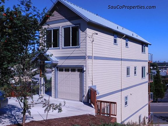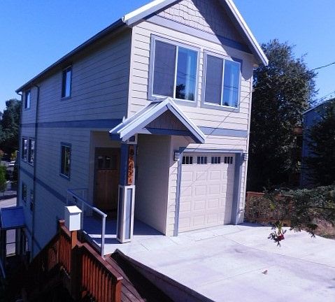 Built in 2016, this home features an urban design with a nice view, see two mountains on a clear day, each of the three levels has its own deck, including one off master! The main level has a gourmet kitchen complete with stainless appliances, granite counters, and hardwood floors. High vaulted ceilings, gas fireplace and half bath round out the main floor. Up one flight, you'll find a large master suite, double sink vanity in the master bath and a custom closet. Another bathroom and bedroom are also on that level. Travel down to the lower level and find another bedroom, full bath, laundry and fourth bedroom that could easily double as additional living space complete with balcony. Tank-less water heater, A/C, washer and dryer included. Located in very convenient location. Two blocks to MAX station and many restaurants. One block to Kenton Park. Easy freeway access. Please note this is a four level home, the lowest level is an ADU and already rented out. All utilities are separately metered except water/sewer/garbage which will be billed at a monthly flat rate. Small Pet OK with owner approval and additional deposit of $500, plus $25 monthly pet rent.