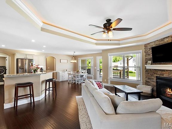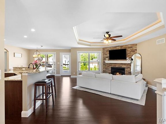 Welcome to this stunning custom brick ranch home, featuring 4 spacious BR's and 3 full baths, ideal for both relaxation and entertainment. Spanning just under 3000sq ft of thoughtfully designed living space, this home greets you with elegant double wood and glass paneled doors. The expansive floor plan boasts tray ceilings in the living area and primary bedroom, enhanced w/elegant LED lighting. The gourmet kitchen is equipped w/ SS appliances, custom cabinetry w/under and over lighting, and a convenient layout that flows seamlessly into living spaces. Step outside to the covered deck, perfect for outdoor dining or relaxation. The oversized 3-car garage features acrylic painted floors and an abundance of outlets for all your tools and gadgets. The w/o basement offers add'l living space, as well as a large concrete patio and newly fenced (23) yard ideal for gatherings/play. Enjoy the added convenience of a sprinkler system, custom shades & plantation shutters thru-out. Each BR features custom closets for optimal storage while the primary boasts a dbl vanity at adult height along w/a separate makeup vanity. Among the many upgrades, you'll find a new roof (24) along w/2 sides new siding, ensuring peace of mind. The basement is a true entertainers dream, featuring ceramic tile, bar w/SS fridge, micro and sink, spacious living area along side a bonus space for a play or exercise room. This home offers ample space & comfort for all your needs. Don't miss the chance to make it yours!