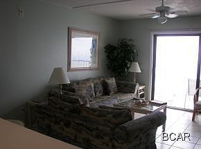 BRING AN OFFER! This fully furnished condo has been well taken care of with newer furnishings and appliances in the last couple of years. Enjoy gorgeous sunsets from the privacy of your balcony. Unit features tiled hallway, Living & Dining areas, and carpeted master. Sleeps up to 6 comfortably with master bedroom, bunks in hall and a sofa sleeper which makes this one of the best rentals on the beach. Amenities include a staffed Tiki bar, sandwich shop, ice cream shop and onsite store. Also, two large swimming pools onsite and one heated throughout the winter, kiddie pool, game room, fitness center, owners lounge, and security guards. Walking distance to restaurants and recreational activities and just a 10 minute ride to Pier Park. The condo has a great rental history! All info is approx and must be verified by the Buyer.