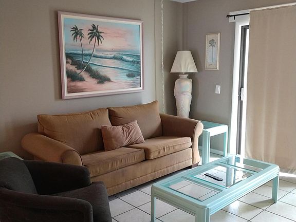 Beach front & Low floor unit. Unit is currently under maintenance, (being repainted) Tiles throughout. Counter tops upgraded. With washer and dryer. NEW AC in 2018. High turn over unit.