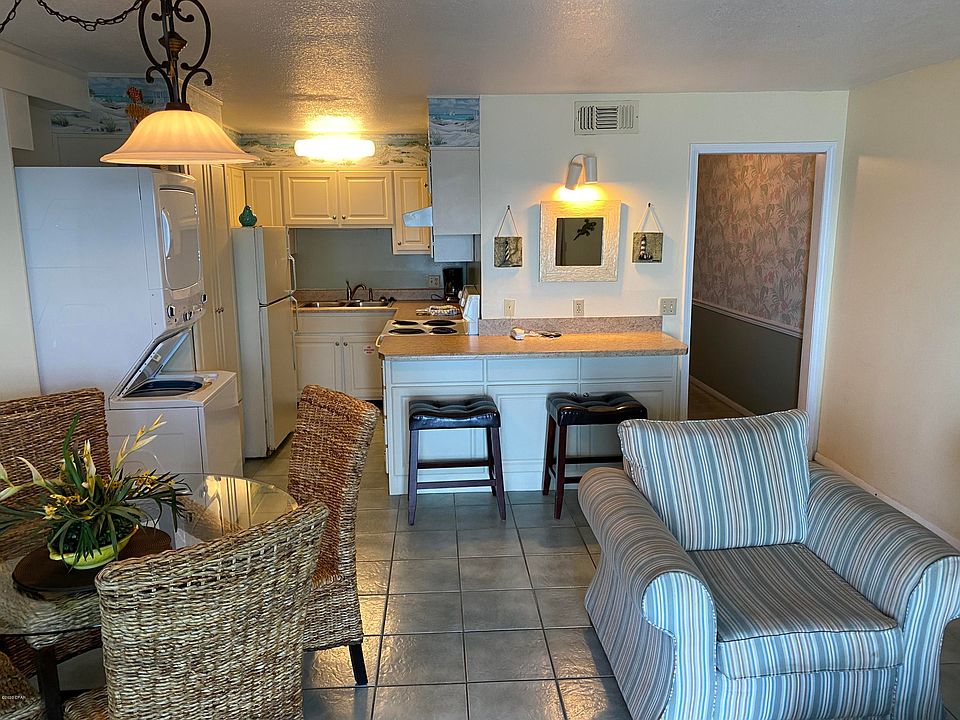 Beautiful Beach Front Condo has new Hurricane slider, AC, water heater, Dishwasher and ceiling . Ready to rent .