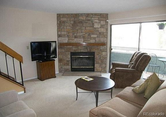 Rarely available! Fabulous End Unit in Silver Valley at Bear Creek Condo's, steps away from Pool, hot tub and Open Space! This unit has a north facing balcony off the living room, letting light stream in! Open kitchen to dining room and living room! Bright and Sunny! Throw the logs in the stone fireplace and enjoy your hot chocolate after walking, jogging, or snow shoeing in the amazing open space adjacent to this home! Pool! Hot Tub! Tennis! Open Space! Vaulted ceilings upstairs! The master bedroom has double closets with a skylight! Second bedroom has double closets. Dyn-o-mite set-up for bedrooms and bathrooms! The basement offers additional Crafting/workshop area next to the laundry! One car attached garage and one reserved parking space! Seller leaving storage cabinets! Well kept complex..Live the Colorado life! Close to Hampden..zip to the mountains, Red Rocks! Close to Belmar for shopping, Whole Foods, Movies and other comforts. You'll be living the 24/7 'Stay-cation'!