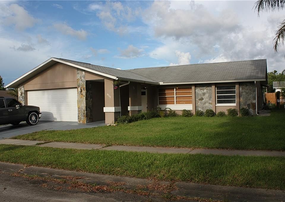 This home features an open and bright floor plan. A large and enclosed lanai surrounding the swimming pool. The pool is large enough for gatherings with family and friends. Bring your Bar B Que pool side and patio furniture for gatherings,it doesn't get much better. Back yard is Fenced for added privacy!!When you enter through the front door, to your right is the spacious living room,straight in front of you is the hallway to the beautiful kitchen and owner's retreat.Next to the Master Bathroom is a sliding door leading out to the pool area,convenient for guest when entertaining. From the living room you go into the dining room w/ the family room right behind it, very open. To the right of the dining room is the guest bathroom and 2 guest bedrooms. On the left of the dining room is the kitchen.The split floor plan may be one of the best features of this home. The kitchen has Granite counter tops, cherry cabinets, stainless steel appliances. The home has a sprinkler system on well, reducing your water bill!!!The family room has updated tile w/wood like surface no worrying about wear and tare. The exterior of the home was repainted just a few years ago.Garage door has hurricane straps on the door for safety. There is a garage door opener. We are able to offer a quick close on this property!Why Wait? Sellers are relocating! Home needs a little sprucing up w/ paint and landscaping(just a little lip stick)she will be a jewel!