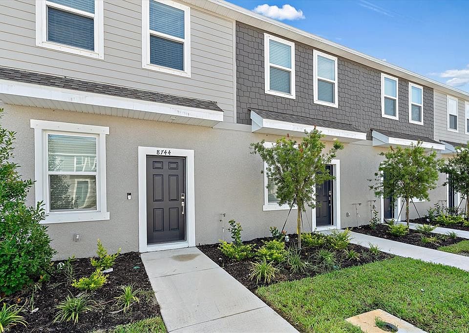 COMPLETE AND READY FOR YOU TO Move right in to this newer 2 bedroom 2.5 bath townhome located in the beautiful Skye Ranch. This townhome offers 2 en-suites upstairs with laundry conveniently located upstairs as well. The first level is light and bright with your kitchen, dining and living room with an additional half bath and lanai with storage. This townhome comes with 2 assigned parking spaces. The community offers 2 pools, miles of walking trails and the amazing Turner Park that includes pickleball courts, baseball and soccer fields, basketball court, dog park and playground.