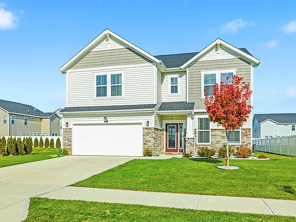Experience the charm of 8744 Dorill Creek LN, Indianapolis, IN, a residence in great condition nestled in a desirable residential area. This inviting property offers a blend of modern comfort and stylish design. The heart of this home is undoubtedly its kitchen, a culinary dream come true, featuring stone countertops that provide both beauty and durability, alongside shaker cabinets which offer generous storage space; the large kitchen island serves as a focal point for gatherings, while the high-end refrigerator ensures your ingredients are always fresh; the wall chimney range hood and stovetop stand ready to assist with any recipe, while the double oven provides abundant cooking capacity. The backsplash adds a touch of elegance, perfectly complementing the kitchen bar. The living room is designed for relaxation and entertainment, featuring a fireplace that creates a warm and inviting atmosphere. Imagine cozy evenings spent in this comfortable space. Retreat to the primary bedroom, where a tray ceiling adds an architectural detail that elevates the space; the attached bathroom features a tiled walk-in shower and a double vanity, creating a spa-like experience. This single-family residence offers three full bathrooms, a laundry room, and five bedrooms, ensuring everyone has their own space to unwind; the walk-in closet provides generous storage. Step outside onto the patio and enjoy the expansive 9409 square feet lot area, which offers plenty of room for outdoor activities. With 3179 square feet of living area spread across two stories, this home offers an open floor plan that promotes a sense of spaciousness; built in 2021, this property also features an open floor plan. Discover the perfect blend of style and comfort that makes this residence an exceptional find.
