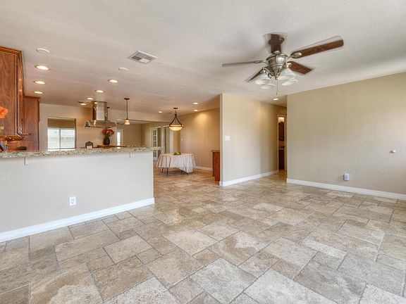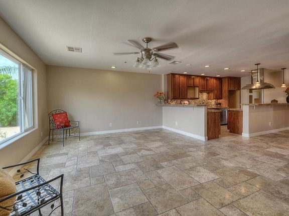 Gourmet kitchen, functional & open. Brazilian granite countertops; stainless steel appliances include a 5-burner gas stove & hood. Family room with built-in entertainment center. Gorgeous travertine tile floor throughout; bedrooms are carpeted. French doors lead to huge covered patio. Master bath has travertine walk-in shower with 2 shower heads & bench. 4th bedroom is situated away from the rest of the bedrooms & could be used as an office, baby's play room, or an artist's retreat. Beautiful xeriscape front yard with plenty of desert color. Back yard lawn with sprinkler system & large side RV lot & RV gate.