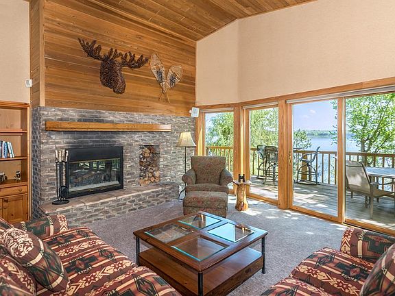 Your Gull Lake Escape awaits in this charming 3-bedroom 2-bath home…nestled beneath a canopy of mature trees and located along a stunning 102’ stretch of premiere shoreline with easy elevation to a nice sand lake bottom. This year-round lakeside retreat features cathedral tongue and groove ceilings, an open floor plan, 2 fireplaces, custom kitchen cabinetry with granite countertops & stainless-steel appliances, a large living room with gorgeous panoramic views through a wall of lakeside windows, a dining area and a main floor primary suite with a vaulted ceiling-fireplace and a walk-in closet. The lower level includes a generous sized family room with gas fireplace, wet bar, sauna, two additional bedrooms and walks out to a fabulous screen porch and covered deck. Enjoy excellent privacy, impressive “Big Lake” views from the large wrap-around deck and a large flat lakeside yard with a firepit…perfect for family gatherings-games and entertaining friends. There is also a 2-stall garage with a nicely finished bunkroom above with its own deck overlooking the lake, a storage shed and underground sprinkling. This amazing Up North getaway is ready to be enjoyed and comes furnished and equipped…just pack your bags and head to the lake. Located in heart of fine dining, Championship golf, a new paved walking/bike trail out your back door and all the fun that the Gull Chain has to offer!