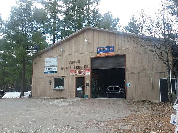 Commercial Glass business with residence.3 bedroom, 1 1/2 bath ranch home on a full basement w/ 3 car attached garage. Property offers 22 +/- acres with awesome red pines, underground sprinkler system and a pride of ownership. Full basement and large deck. Many new updates. 30x52 and 40x40 pole building with office and an extra 26x56 storage building.