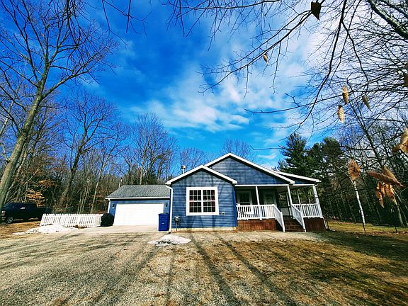 Great, Main-floor Living, newer build 2018 in Onekama just .5 mile to PORTAGE LAKE Access site that channels out to LAKE MICHIGAN! Very nice 3 bed, 2 full bath home sits on 1.53 acres at road end next to 13-Acre Glen Springs Park! Two-Car attached garage w/ mud room access to the Laundry area. The 2/3 Covered Porch makes a nice area to enjoy the side yard to BBQ or step down to a nice fire in firepit. Inside, you can enjoy the wood-burning Fireplace. Open floor plan in main living area w/ kitchen island. Nice big windows to let in the light! Primary bedroom has walk-in closet & en-suite full bathroom. This home sits on a 42in crawl w/ heated, concrete floor & lighting making for nice storage. Good closet space all throughout. All amenities near. Onekama Living at its Best!