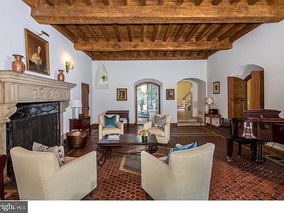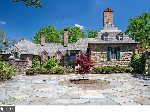 Ropsley is an architecturally significant, one-of-a-kind four-acre country estate designed by Mellor, Meigs & Howe in 1917, in the desirable Wyndmoor neighborhood. Tucked behind winding stone walls, the entire arrangement of rooms, forecourt, gardens and service courts were designed with the compass in mind, highlighted by the compass in a beautiful mosaic on the floor of the great hall. This exceptionally thought-out home includes sight lines designed in order to present the most pleasing views from each room. The level at which the main floor is set offers dramatic views of the parterre and grounds with mature trees and landscaping. The home was completely updated and restored by the current owners and is replete with many original details and all modern systems. Upon entering the rotunda, with a dramatic circular staircase forming the center of the house, you are immediately struck by the exquisite craftsmanship and detail. The great hall with hand-carved stone mantle, original timber framed ceiling, and Enfield tile floor leads to the wood-paneled drawing room with full bath. Floor-to-ceiling windows look out on the stately terraces and pool. The dining room with built-ins and fireplace provides the perfect space for more formal entertaining, while the family room with vaulted ceiling and corner fireplace offers a respite for cozy gatherings. The kitchen with vaulted 2-story ceiling and large center island with adjacent, sunlit morning room will quickly become a go-to spot for coffee overlooking the rear grounds. Upstairs, the master wing offers a large master bath with pretty views of the property, a convenient study and laundry, and a large, adjoining bedroom with en suite bath. The second floor living room offers access to the separate in-law or au pair suite, with full, eat-in kitchen, full hall bath and two bedrooms. The third floor of this home offers a large bedroom with a living area with kitchenette and second laundry. There are two additional cottages on the property, perfect for extended family or rentals. Located just minutes from regional rail, major highways and the shopping and restaurants of Chestnut Hill. Ropsley is a truly spectacular estate. 2021-07-19
