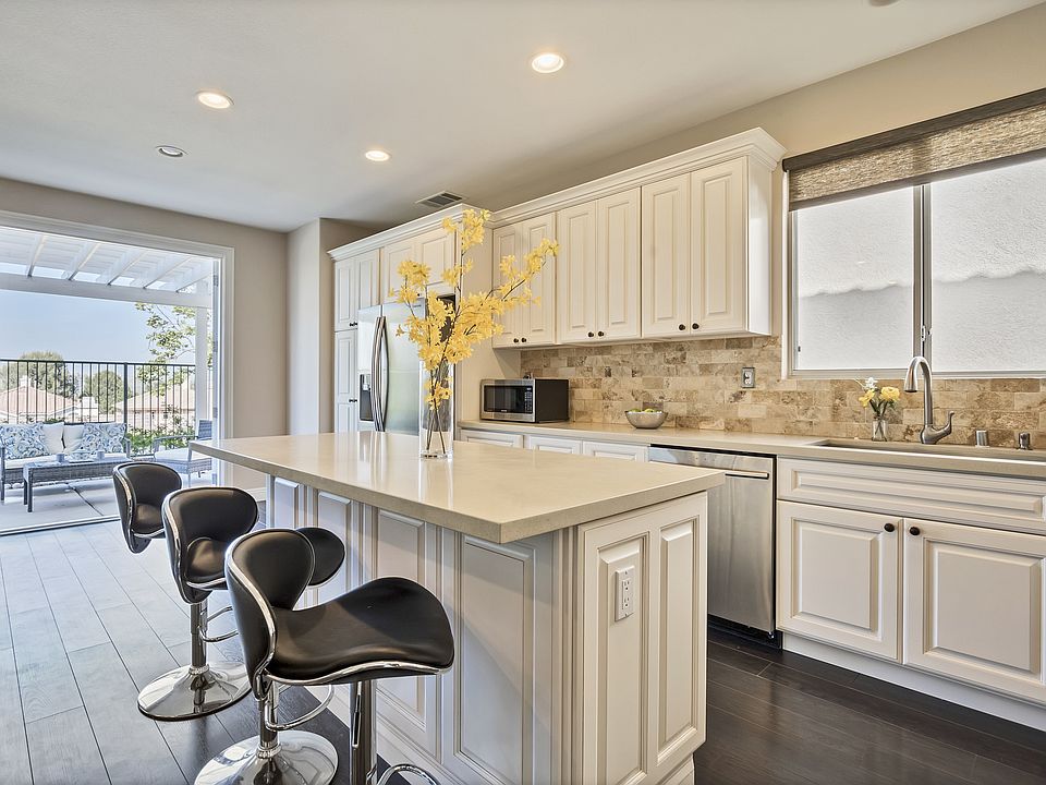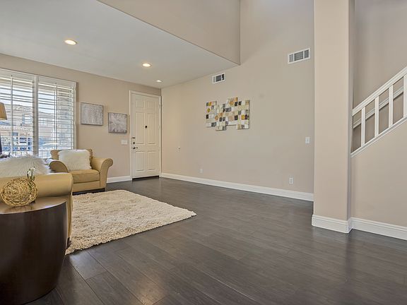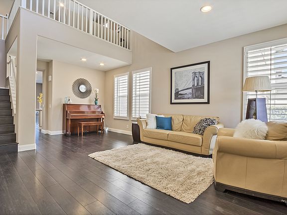 Nestled in the quiet and scenic community of Cambria in Anaheim Hills and surrounded by the greenery of nature and open majestic views, this turn key home features three bedrooms plus large open loft (can be 4th bedroom) and 3 baths. Upon entering the home, you enter the living room and will notice the high ceilings, planation shutters, and dark hardwood floors. The upgraded and remodeled kitchen with professional Thermador stove oven, stainless steel appliances, custom stone back splash opens up to the family room and french doors that open up to your resort style backyard. Upstairs you will find all bedrooms and open loft area and master bedroom with views to the north. Relax and unwind in the waterfall oversized jacuzzi spa or BBQ in your lush backyard which is perfect for entertaining friends and family. Close to shopping, dining and entertainment and award winning schools freeways and toll roads and low HOA dues/no mello roos.