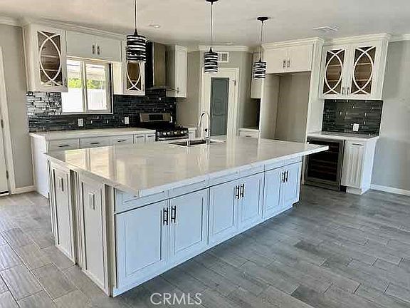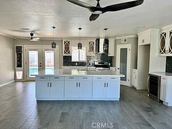 Totally remodeled 3 bedroom/2 bath main home with additional 720SF built-out garage studio with full kitchen and bath. Great for extended family or rent out for additional income. This home has it all. Wood look tile floors throughout. The kitchen includes custom cabinetry, quartz counters, built-in microwave, wine fridge, walk-in pantry and extra large island for prep and entertaining. Electric fireplace in custom TV surround. Recessed lighting and ceiling fans throughout. Master Bedroom with ensuite bath, custom tile surround shower with multiple heads, bench, and niche. Walk-in closet. All bedrooms have barn-door style doors in closets and ceiling fans. Dual-pane vinyl windows, decorative niches, and Nest thermostat. Large backyard is perfect for entertaining with built-in pool, hot tub, covered patio, raised bed garden, pizza oven, grass area, and dog run. Stamped concrete on front driveway with potential RV parking. Custom tile surround with stand-alone tub in 2nd bath. Vinyl fencing surrounds property. Brand new paint on home exterior.