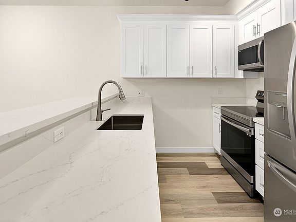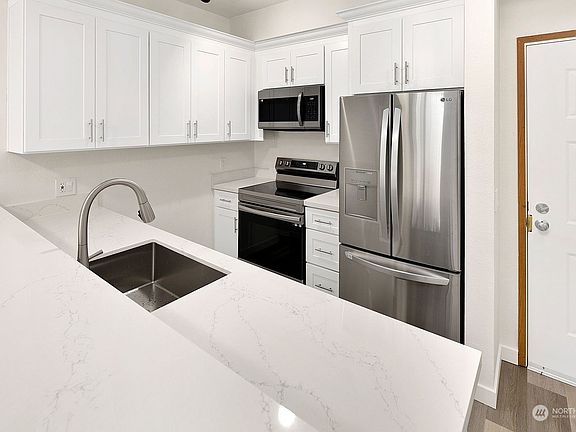 Freshly updated first floor condo for sale! Complete overhaul of the unit with new quartz counters in both bathroom & kitchen, brand new cabinets, flooring, and stainless steel appliances. Large and open patio area perfect for outdoor entertaining. Secured parking with one designated parking spot. Walking score of 91 and only minutes away from restaurants, shopping, and entertainment. Conveniently located in the heart of Greenwood with easy access to Highway 99 or I5!