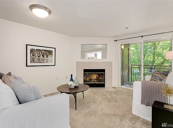 Perfect 1 bed condo in prime Greenwood location! Updated kitchen w/ stainless appliances & breakfast bar overlooking living room w/ fireplace. Light & bright bedroom and spacious bathroom, plus in-unit laundry/large utility room-rare for a condo! Private covered balcony with storage unit. Secure lobby entrance, ADA-accessible, pet-friendly & well-run HOA w/ no rental cap. Newer roof & siding. Garage parking space included. 93 Walkscore-walk to Safeway, Walgreens, parks, bus lines & restaurants!