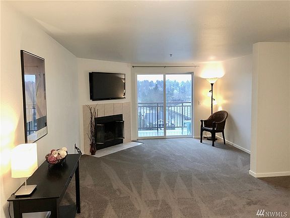 Urban living in the heart of Seattle's Greenwood district. This Top floor, 1 bedroom unit has all the comforts of home without the yard work and upkeep. Unwind in the light filled living room w/cozy wood burning fireplace or escape to your private balcony w/territorial & Mtn views. Features freshly painted interior, new plush carpet, galley kitchen w/cherry cabinets, breakfast bar, laundry room, secured lobby & garage entry. Close to bus, parks, restaurants, shopping and just minutes to downtown