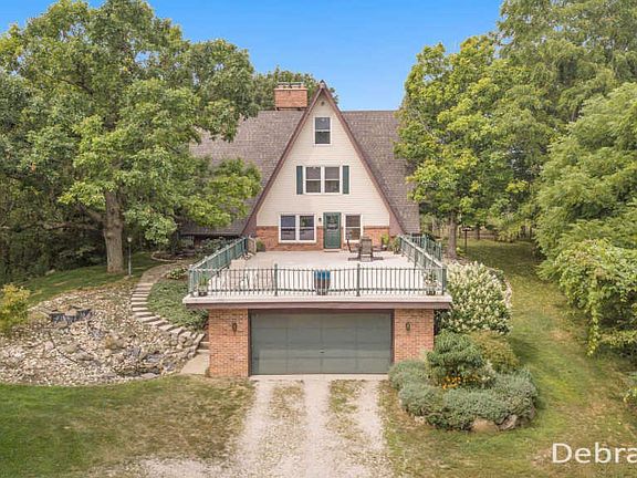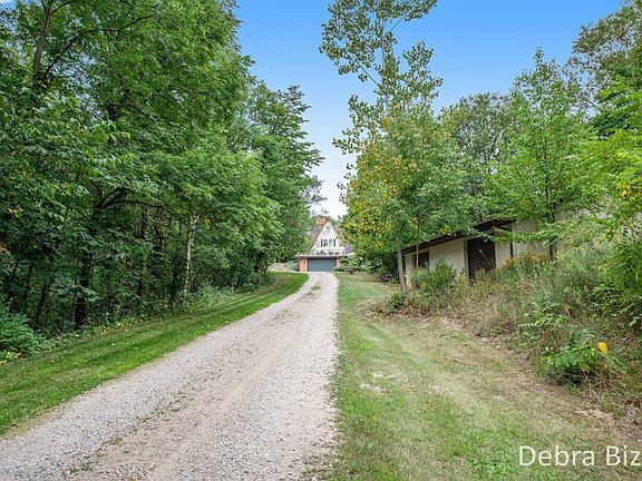 Welcome home to your own piece of paradise! Don't miss this incredible home! This is an exceptional property. You'll love the character and quality of this spacious ''Pottery Barn'' A-Frame home sitting on top of a hill with a gorgeous view. The property is over 9.5 acres complete with a large pole barn. A very good hunting property. Home is in excellent condition. Three Bedrooms, the master has bonus stairs to cozy upper room( could be an office/nursery/large closet) Bright and open kitchen and eating area has been updated! Stunning slate floor on main level and great room with huge fireplace and soaring ceilings! Two full baths and one half bath. Main floor laundry and office area too. Lower level could be finished . Tons of storage in lower level. Great location nestled between Gun Lake and Pine Lake. Truly an amazing property!GPS is usually incorrect and brings you across the street. Look for Realtor sign w/arrow.