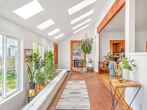 Looking for a unique and beautiful vintage home? This is it! Light-filled Kenton farmhouse on a huge lot offers endless possibilities. Flexible floor plan with big windows, skylights galore, high ceilings, exposed beams, amazing natural light, wide open floor plan and beautiful wood floors. Updated kitchen has newer cabinets, counters and appliances + dining space for big dinners. Great home for hosting parties and events indoors and out. 3 beds up with expansive space in the primary bedroom. 4th BR on main doubles as office. Roomy spaces to spread out and enjoy. Many updates including new interior + exterior paint, AC, new gutters, new windows and french drain. Big fenced backyard has fig, plum + cherry trees, raised garden beds, grapevines + room for RV parking. Quick stroll to Kenton Park, Posies, Kenton Club + the Kenton Farmer's Market. Come see Saturday and Sunday 11-1. [Home Energy Score = 1. HES Report at https://rpt.greenbuildingregistry.com/hes/OR10226804]