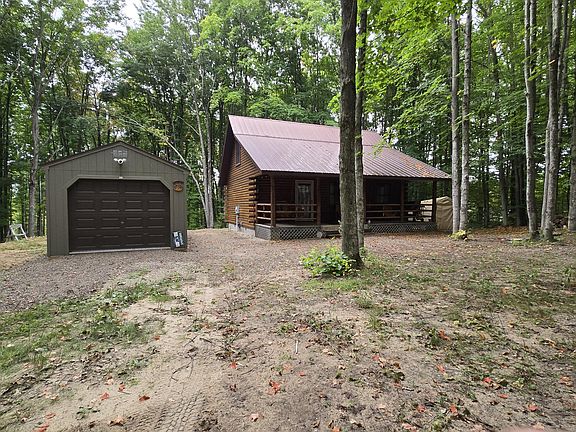 Your Perfect Escape Awaits! Welcome to this enchanting 1 bedroom, 1 bath log home nestled in the picturesque community of Lakes of the North. Combining rustic charm with modern amenities, this cozy retreat promises a serene lifestyle among nature's beauty. The cabin boasts a large, inviting front porch. The interior has warm, natural wood finishes with new LVP flooring and new stainless steel appliances. The upstairs loft features a large open bedroom with plenty of storage. Main floor bath & laundry. The home includes a new, single stall garage with electric that provides both security and functionality for all your storage needs. Enjoy access to private lakes, an indoor pool, a golf course, and miles of hiking and snowmobile trails. For Sale only and NOT FOR RENT.
