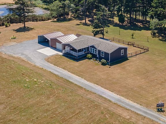 Coastal Bliss! Immaculate 2017 manufactured sitting on 2 level acres. Offering a flexible floor plan with 3 bedrooms and 2 bathrooms. Architecturally appealing with plenty of open light, spacious living room, ample dining room and kitchen area. Detached garage, carport and fenced yard. Expansive covered porch for year-round enjoyment add to the appeal of the home.