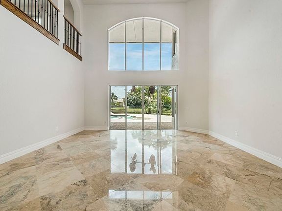 This lakefront home situated on a cul-de-sac is the upscale tropical oasis you have always dreamed of. Entertain with style in the formal living room with a wet bar and two-story ceiling. Delight your inner chef in the gourmet kitchen equipped with a double oven, granite countertops, granite backsplash, a center island, breakfast nook and a snack bar finished in decorative stone. Host dinner parties in the elegant formal dining room with a column entrance. Retire to your master suite with a coffered ceiling, a spacious sitting area, his and hers walk-in closets, dual sinks, a walk-in shower and a soaking tub. Relax on your covered patio overlooking the heated pool with a beach entry & spa, tropical landscaping and a serene lake view. BRAND NEW ACs and freshly painted inside & out.