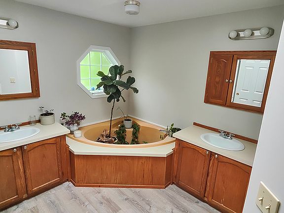 Bathroom has small stand alone shower, two sinks, a soaking tub, linen closet, walk-in closet, and skylight. The bedroom is on opposite side of house from the other rooms.