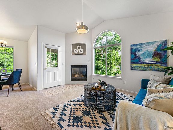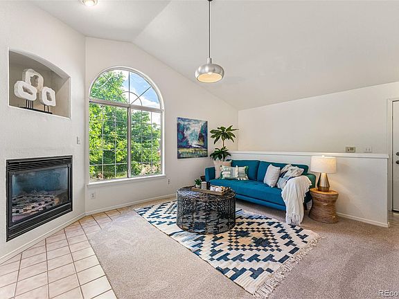 Welcome to your one-bedroom penthouse condo in the Saddle Ridge community, where comfort and convenience blend seamlessly. This home features a thoughtfully designed open floor plan with defined living and dining areas, great for entertaining or simply relaxing. There's also fresh paint, plush new carpet, a cozy gas fireplace, and a convenient laundry area. For respite, the primary retreat boasts soaring vaulted ceilings, a walk-in closet, and an en-suite bath. You'll also love the private patio and the ease of an attached, one-car garage. Beyond home, you can enjoy exceptional community amenities, including a clubhouse with a pool, hot tub, and well-equipped fitness center. This prime location also gives you easy access to shopping, the Denver Tech Center (DTC), and light rail. Don’t miss this opportunity to own a wonderful home in a fantastic location! Lots of light, corner penthouse unit, large picture windows, new carpet, new paint, attached one car garage, great location, easy access to lightrail, airport, DTC, mountains and more.